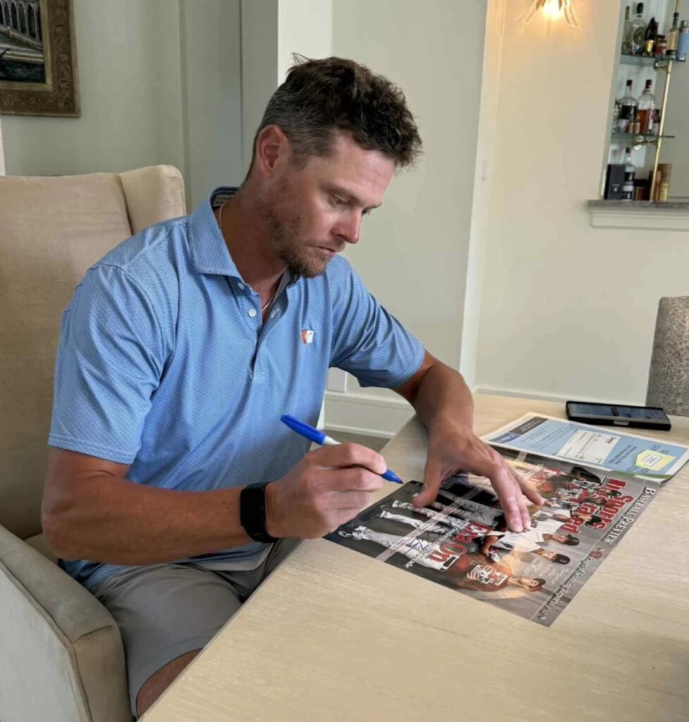 Today’s mail brought a real fun one! The 2008 Sports Illustrated Baseball Preview Issue had six players on it. It featured a fold out cover to show all six and they were real up and coming superstars. I had four of the six already sign it when I found that Todd S (toddschafer on SCN) was having a signing with Clay Buchholz, one of the remaining two. I excitedly mailed in my magazine and received it signed today! Todd even posted a photo of Clay signing it on his Facebook page! I am down to needing just Troy Tulowitzki to finish it up!