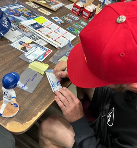 Todays mail included a pair of items I had sent out. The first was a debut ticket, inscribed with “MLB Debut” and a baseball signed by Gavin Lux. Luis B at oneway77jc.com had Gavin in for a signing and inked up my items. I am pleased with everything Luis and his crew has taken care of for me. One Way even got a photo of Gavin signing my ticket!