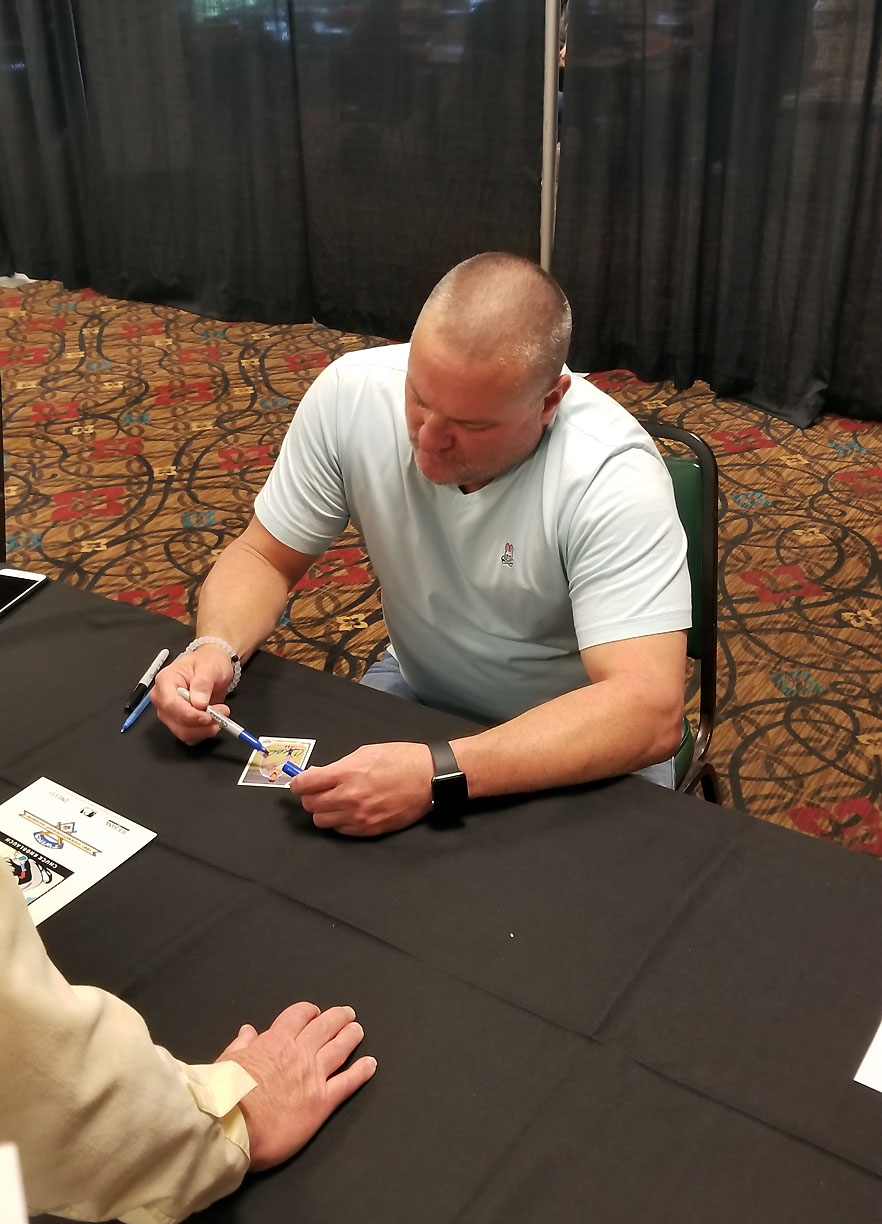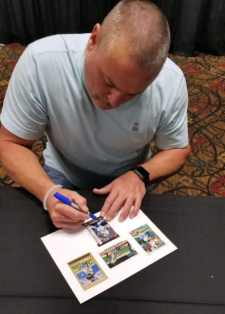 Chuck was very personable which was really cool. The person before me had his Upper Deck rookie card to get signed and Chuck looked at it and told him that the picture on the card was taken when he was in Double A “with those old ironed on logo uniforms!” Pretty neat he remembered that. After signing my items he shook my hand and thanked me.
