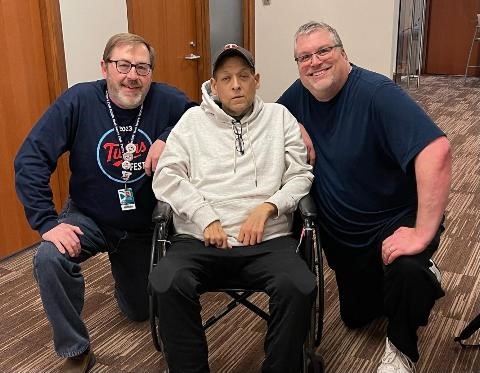 We moved on to the Meet and Greet but were a little late. We were able to find a spot and enjoy a half hour of Royce Lewis and Pablo Lopez. Let me tell you, this was THE highlight of the weekend! Both players were so personable it was so cool to see them in a relaxed environment and answer questions from a handful of fans. We got a photo with them after the talking and found out my buddy Rob was looking for us so Shane and I waited outside the suite for Rob to show up. It has been a long standing highlight for Rob and I to meet up and spend a few minutes chatting at Twinsfest. We chat throughout the year and see each other as well but ALWAYS at Twinfest. Shane’s buddy Pete and his son Daniel joined us and we had a nice half hour chat and catch up with everyone.