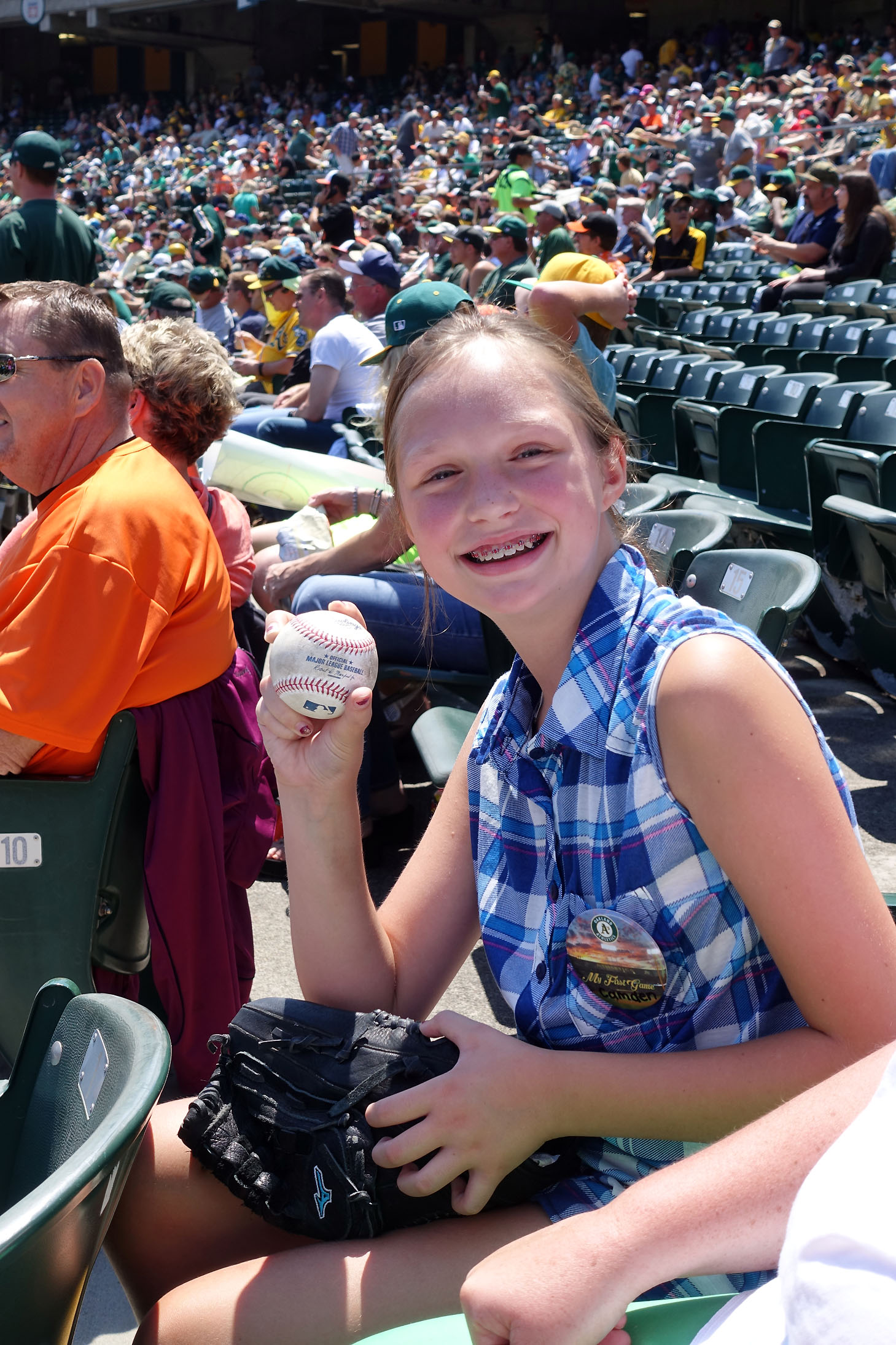While on our family vacation, we went to an Oakland A’s home game and Cami had the time of her life at the game.