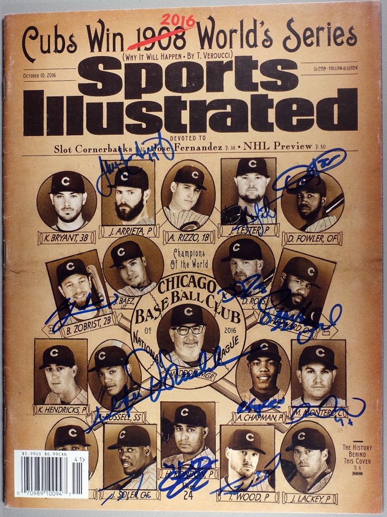 I am getting to the point where my 2016 Cubs Champion Sports Illustrated will be next to impossible to add any more autographs to it. Not because of space but because of the availability of the other signers. I think the only one left that is reasonably easy to obtain will be Pedro Strop (poor guy has the barcode over half his picture) but for now, I just added Addison Russell to it.